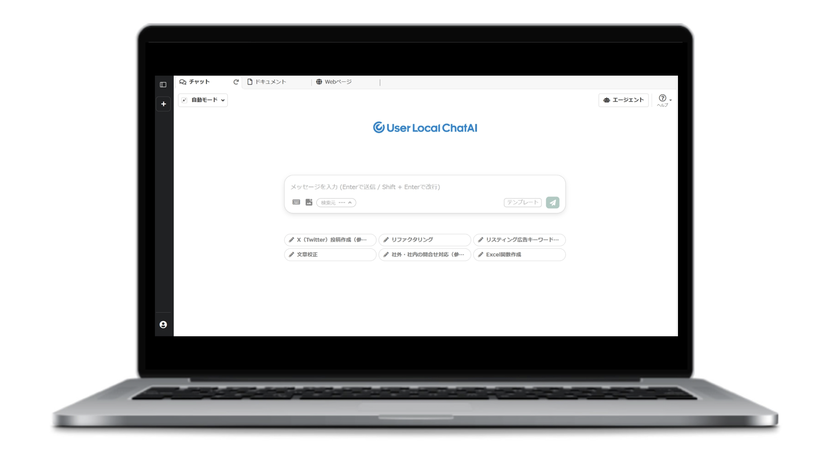 「ユーザーローカル ChatAI」 は、生成AIを企業内で安全に利用でき、社内ファイルなどの自社データに対してもチャット形式で回答することができる生成AIプラットフォームです。